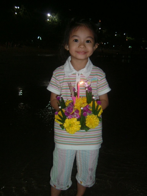 A thai emberek ilyen díszes virágcsokor - kratong - vízre helyezésével küldik el kívánságaikat a Víz Szelleméhez |